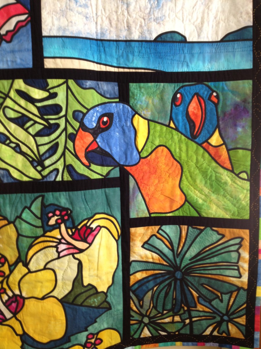 quilt detail. I love that this cheeky bird is investigating the next block!