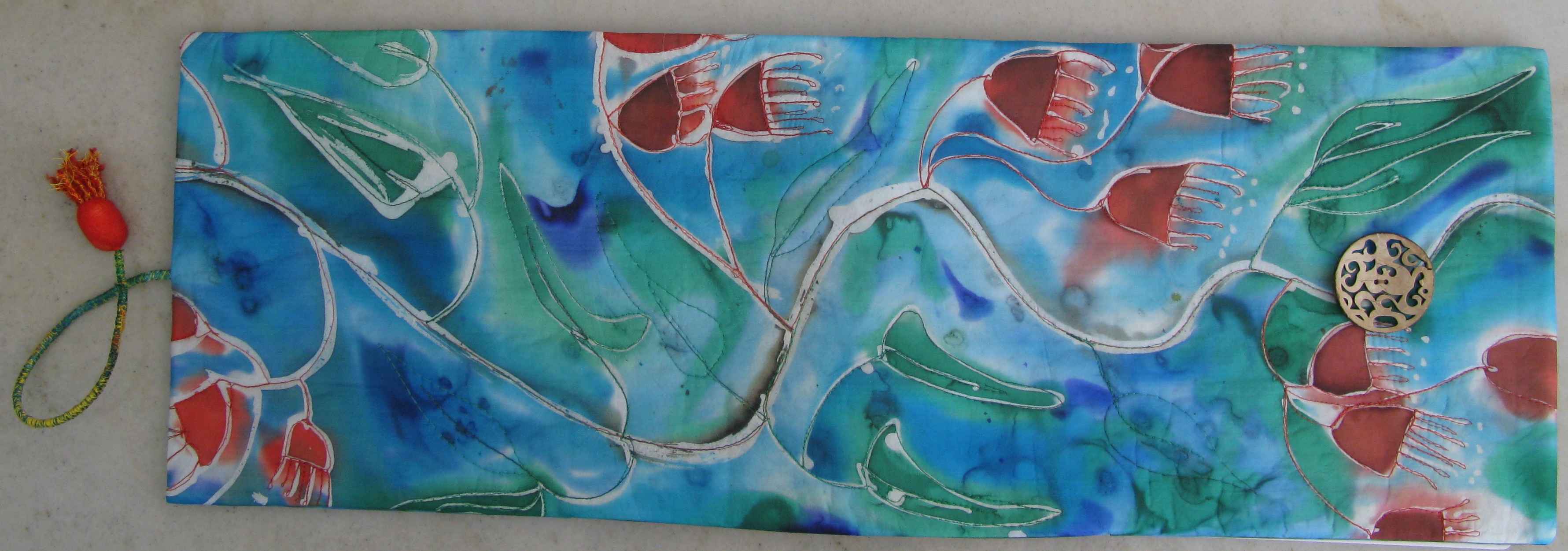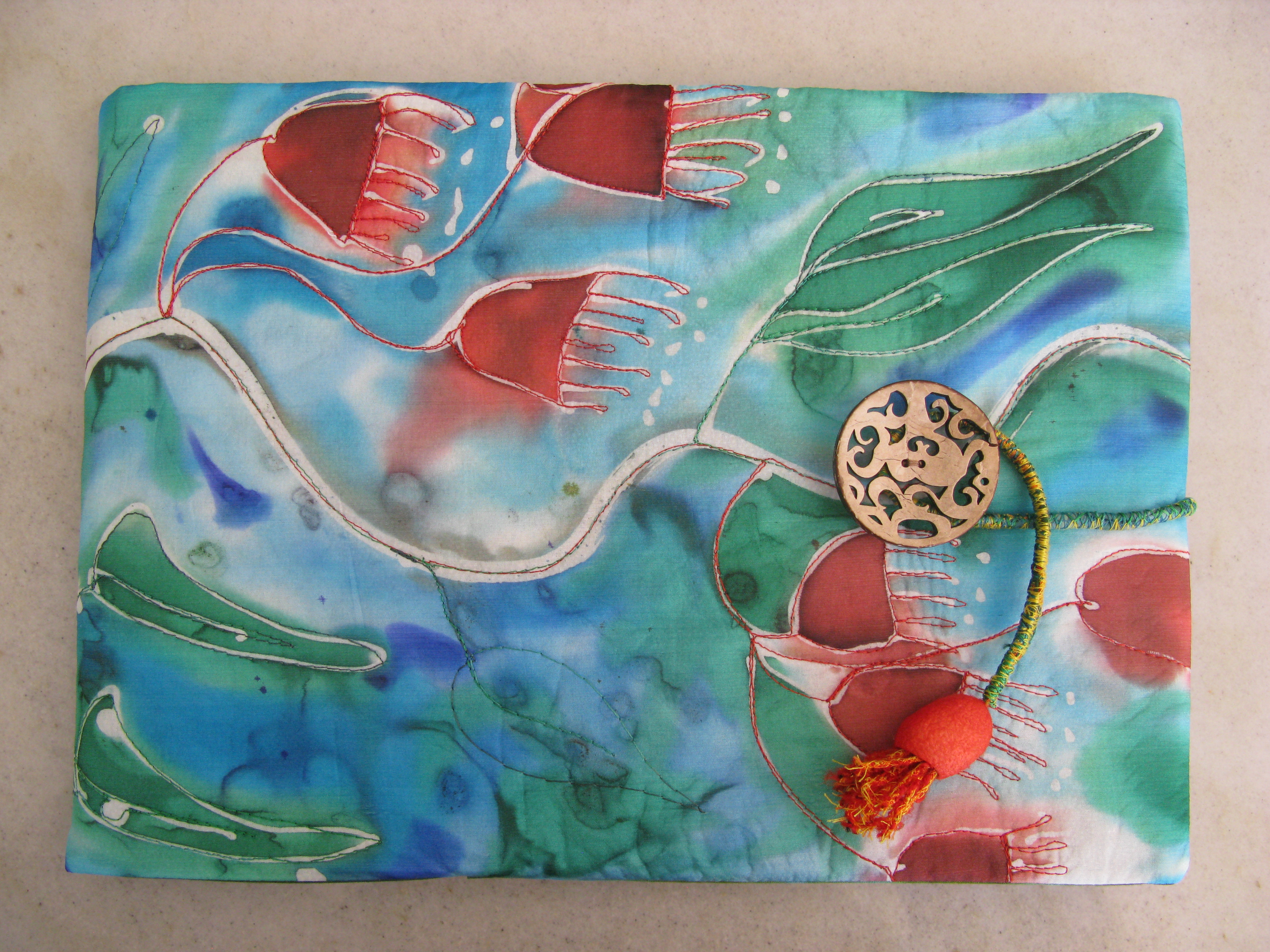 I was finally brave enough to use a piece of silk that I painted in a Liz Heber (AUST) class years ago!