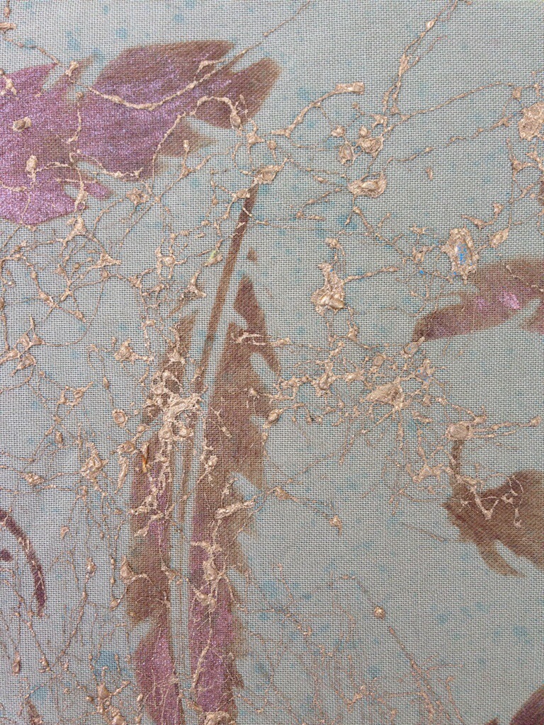 As a prompt to keep artistically motivated and creative without too much time commitment, my textile art group challenge ourselves each month to create a piece of cloth. The only stipulation is that it needs to have 3 things creatively applied to it. This can be anything from stamping or dyeing to overlaying 3 different colours. The idea is to create a base fabric, not a finished art piece.