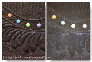 In the end Karen used black Shiva sticks to paint over the black fabric. The wonderful quilt has gone on to win prizes and be featured on The Quilt Show.