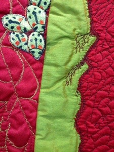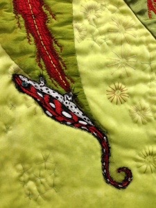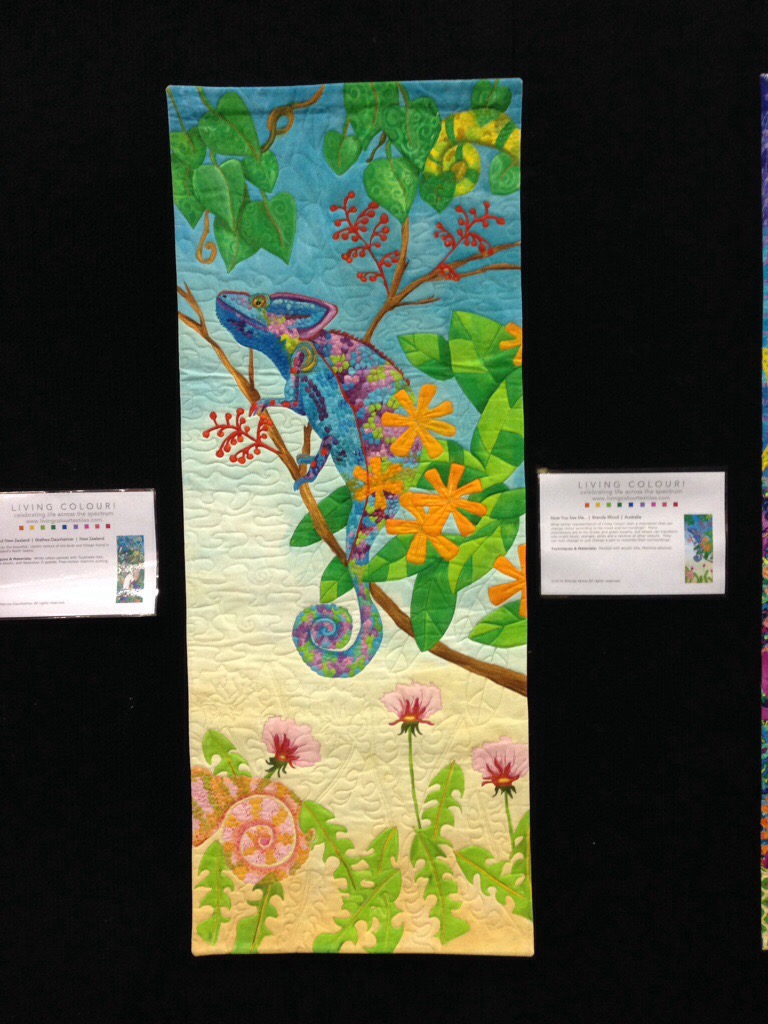 Luckily for me, I’m one of the lucky ones! My Chameleon quilt titled “Now you see me” was selected along with three other full time members of our Reddy Arts Textile Group, and one distance member of our group also got selected, which was a great coincidence as Brenda did not know us or that we were from the group! It was as much of a surprise to her that we all knew each other as it was for us all to be selected!
