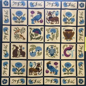 The displayed works of the previous year’s award winner are always a delight to behold. Michele Hill, the winner of the 2014 Rajah Award, is internationally famous for her William Morris designs and love of appliqué. These are just a few from her extensive body of work that were on display.