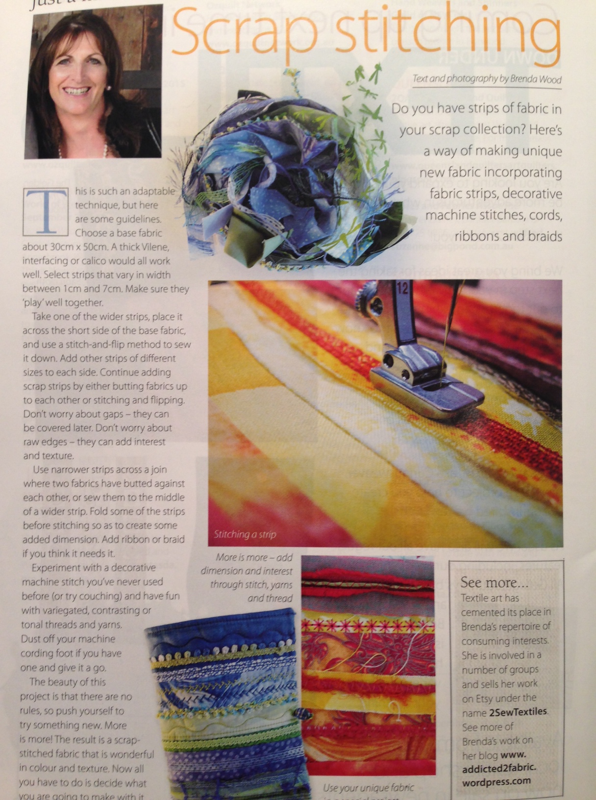 In the Just A Minute Article on the last page, I show you how to use these awesome strips and combine them with machine or hand stitches that you’ve never had the opportunity to try and use those ribbons and wools that are peeking out of your stash.