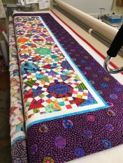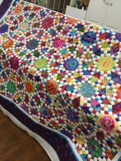 “It measures approx. 62×90″. I didn’t make this quilt top, that honor belongs to my guild Bee, the Cut-Ups. This quilt will be our donation to the Guild (Quilt Guild of Greater Houston) for the Live Auction part of our 2017 Quilt Show-Joy of Quilting. Planning to be in or around the Houston area the first weekend of May? You could own this quilt! Our show is Friday and Saturday, May 5-6th at The Stafford Center in Southwest Houston.