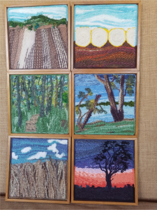 As a local focus we decided to create a DDD display, which would depict scenes from the local Darling Downs and Dalby areas. The small works were 8″ square and each artist created 6 of them.