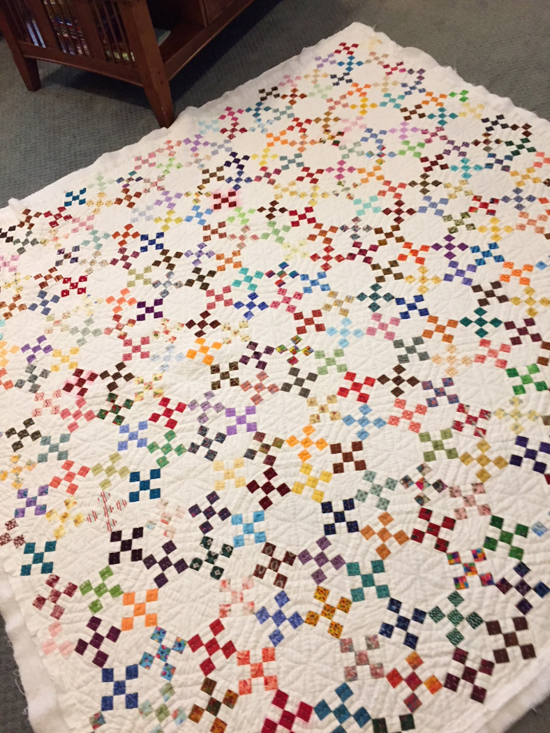 She then hand quilted it with a “big Stitch”. Amazingly She finished the quilting in just one month and attributes it to using Perle 8 cotton.