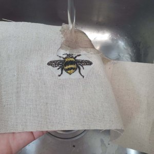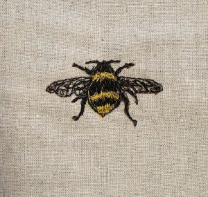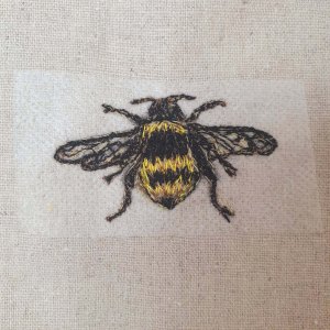 flower and bee finalThis versatile fabric like product allows you to draw with your machine or by hand stitching, over an image you may not have been able to attempt before. And if you want to add more colour, you can add a layer of fabric under the image to highlight elements of the drawing.