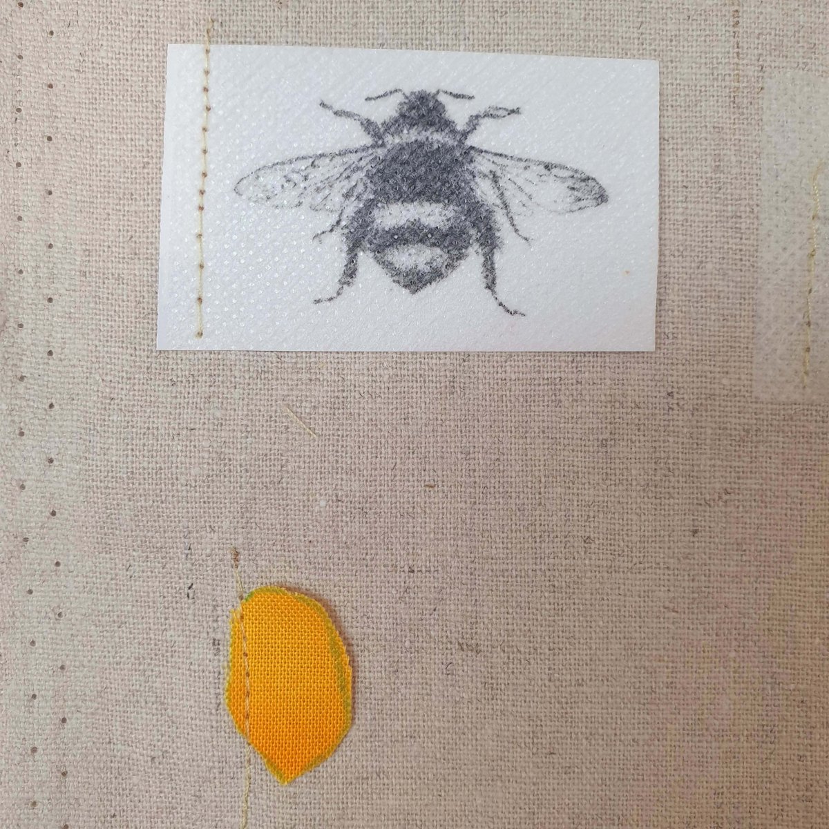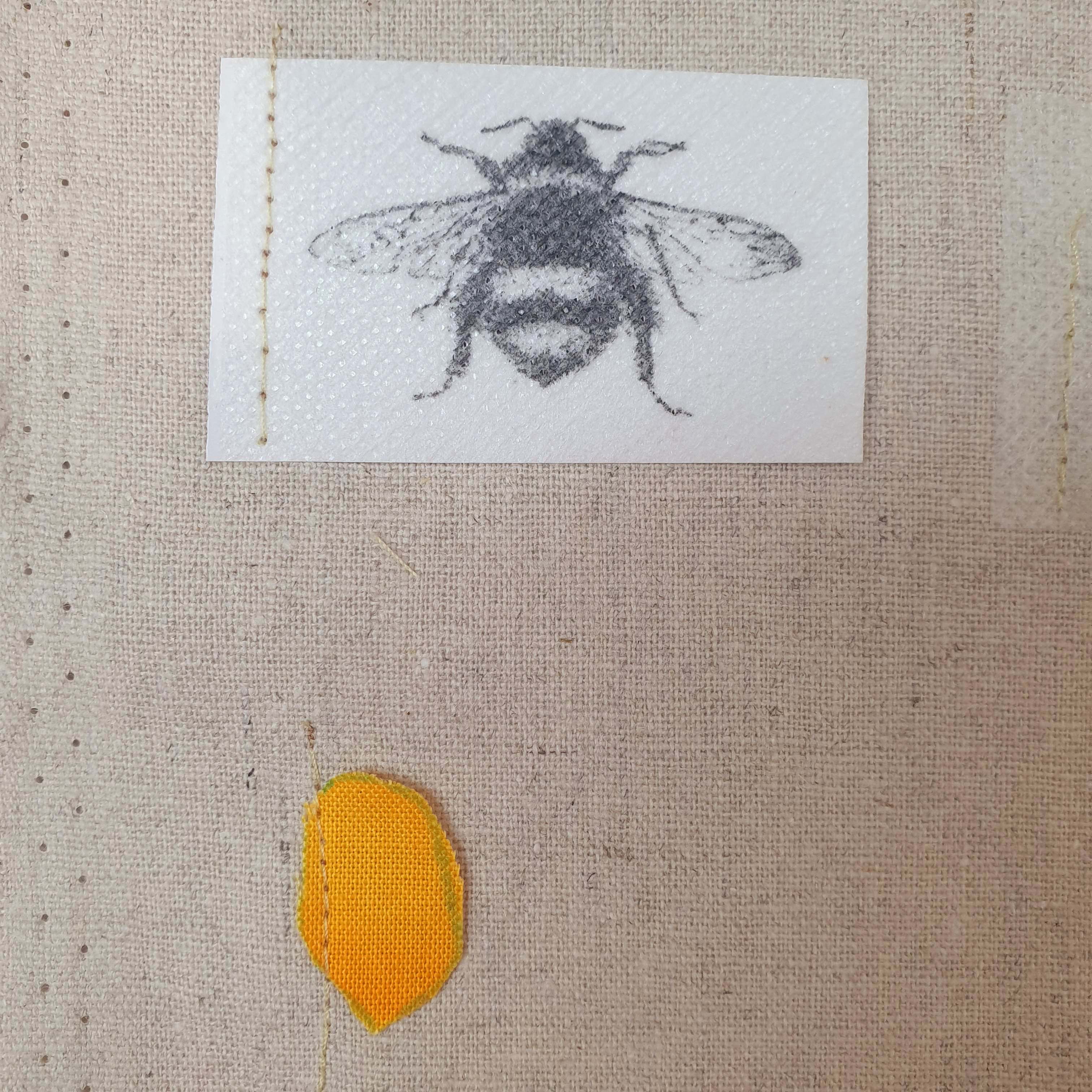 The printed bee on Fabri-Solvy with traced yellow abdomen to be appliqued