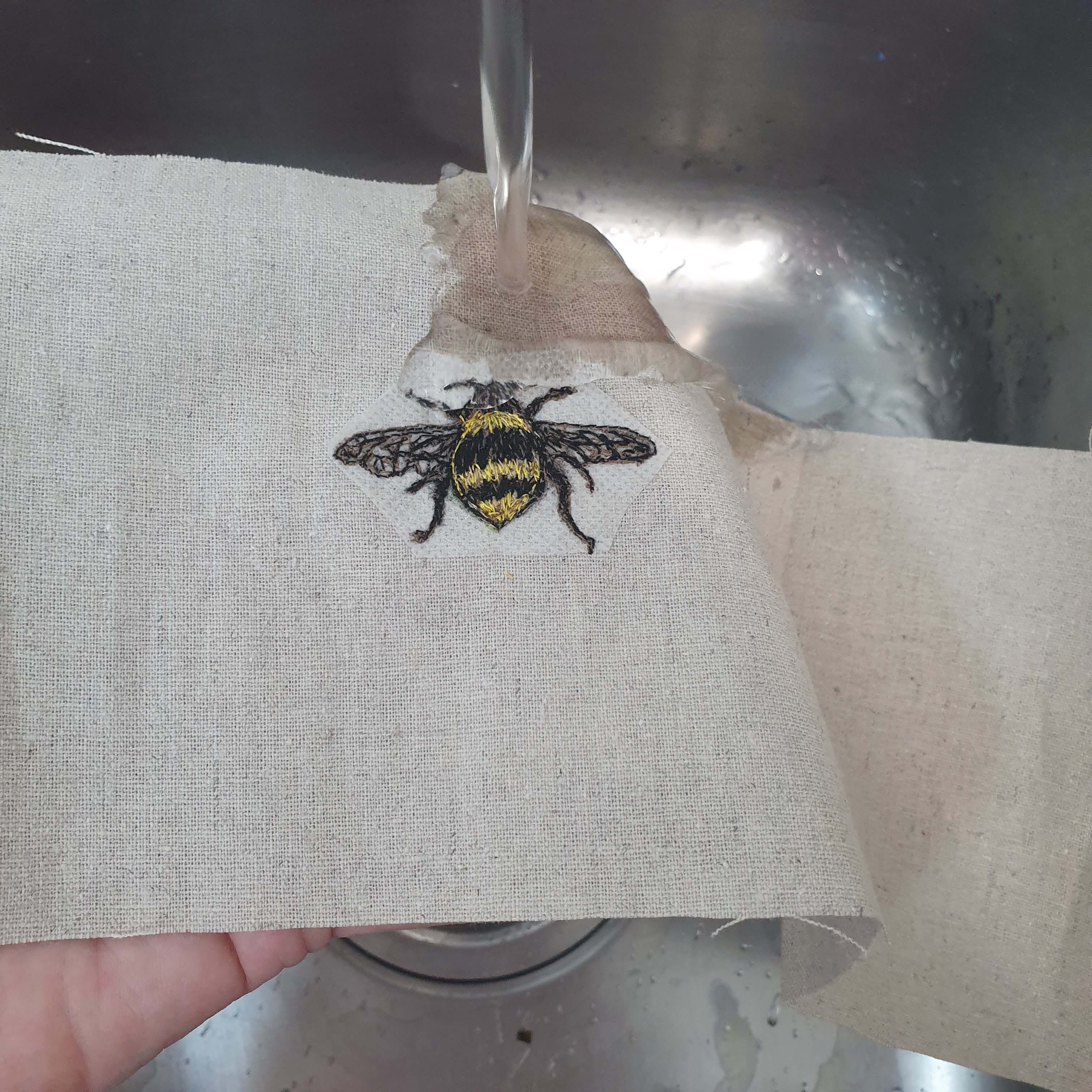 Solvy is removed by rinsing in tepid water
