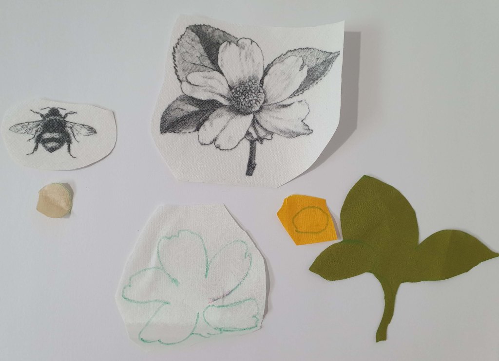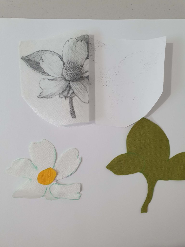 1: Trace the printed image if desired onto fabric and cut out shapes to be applied