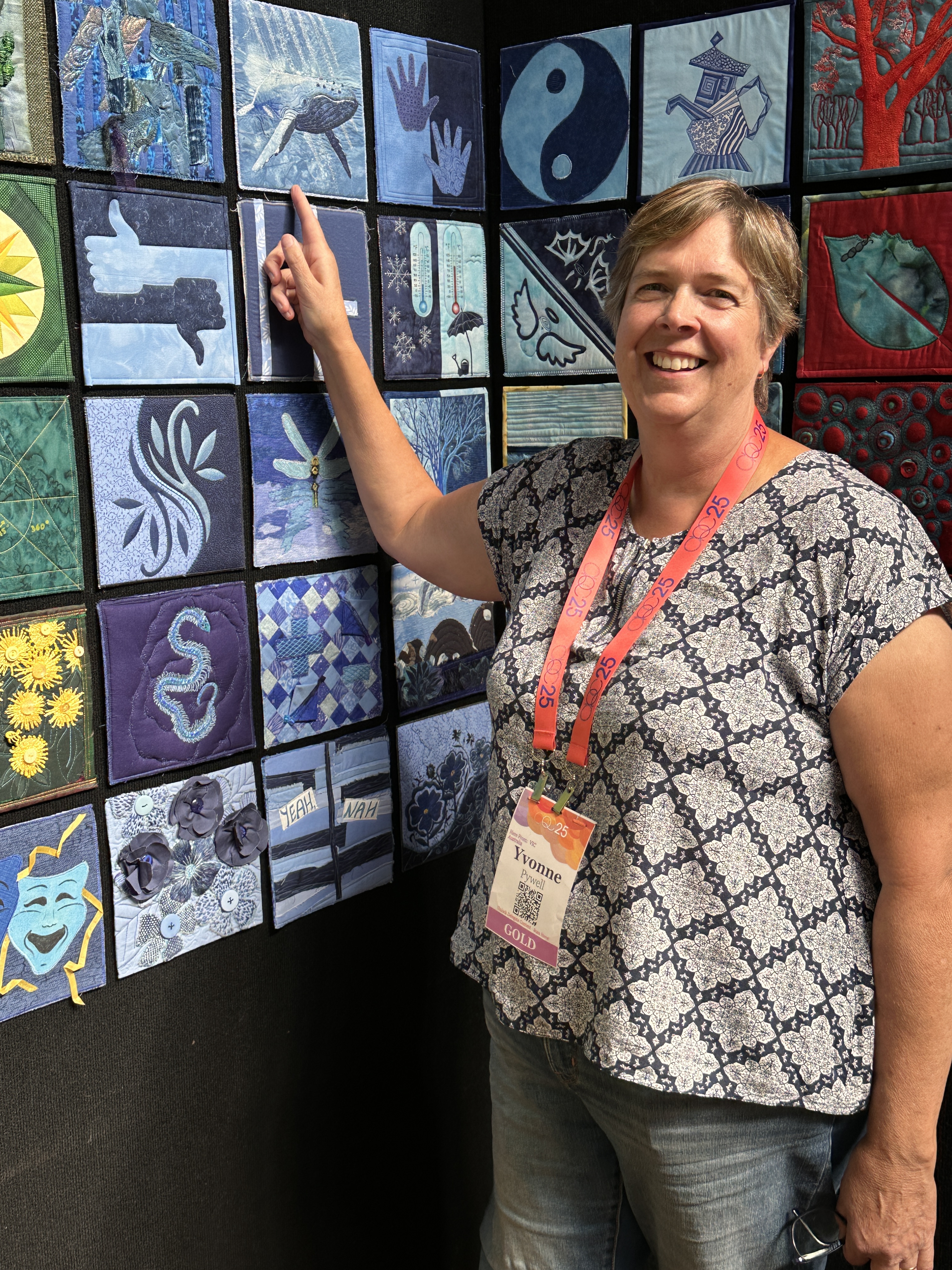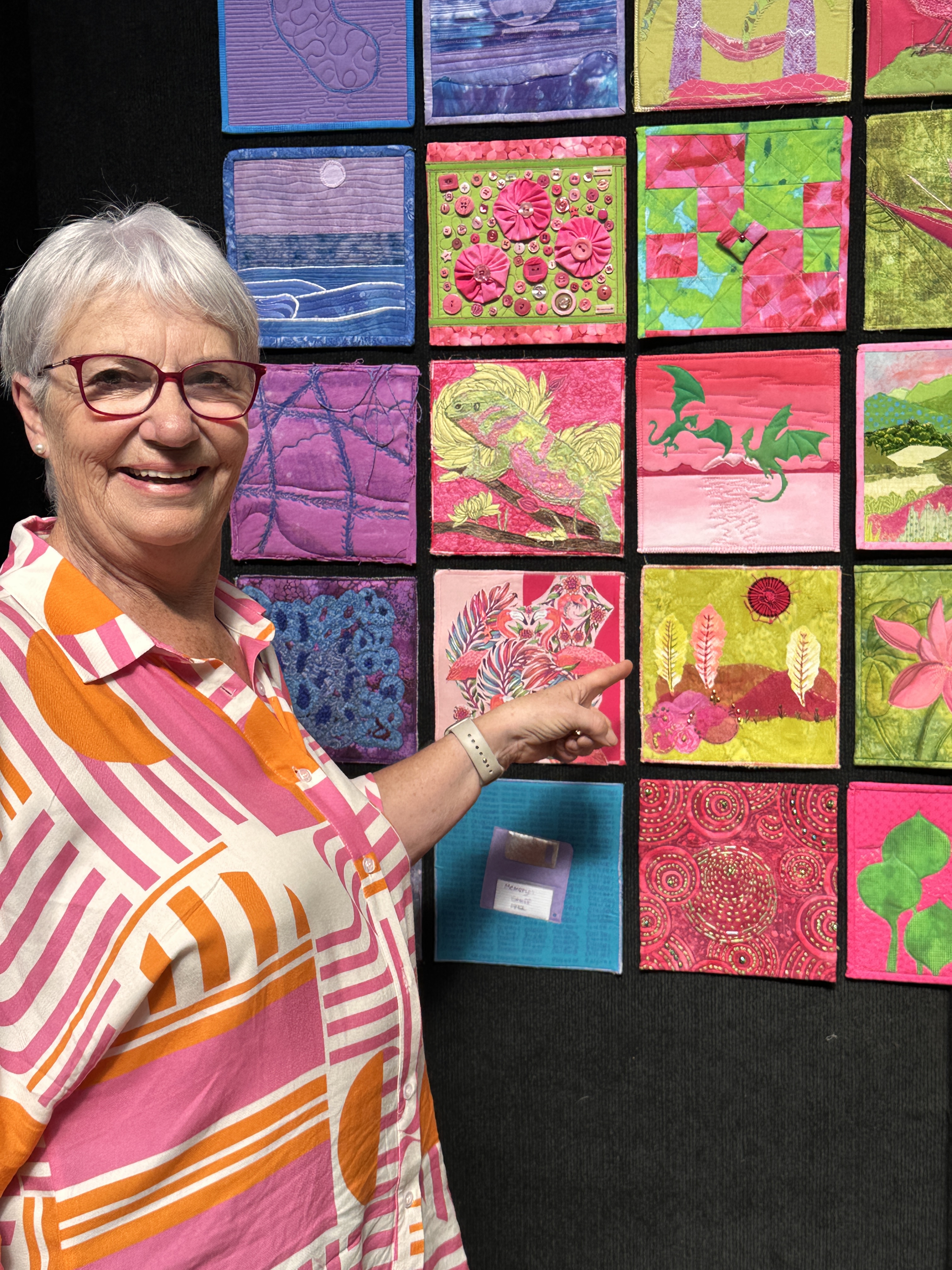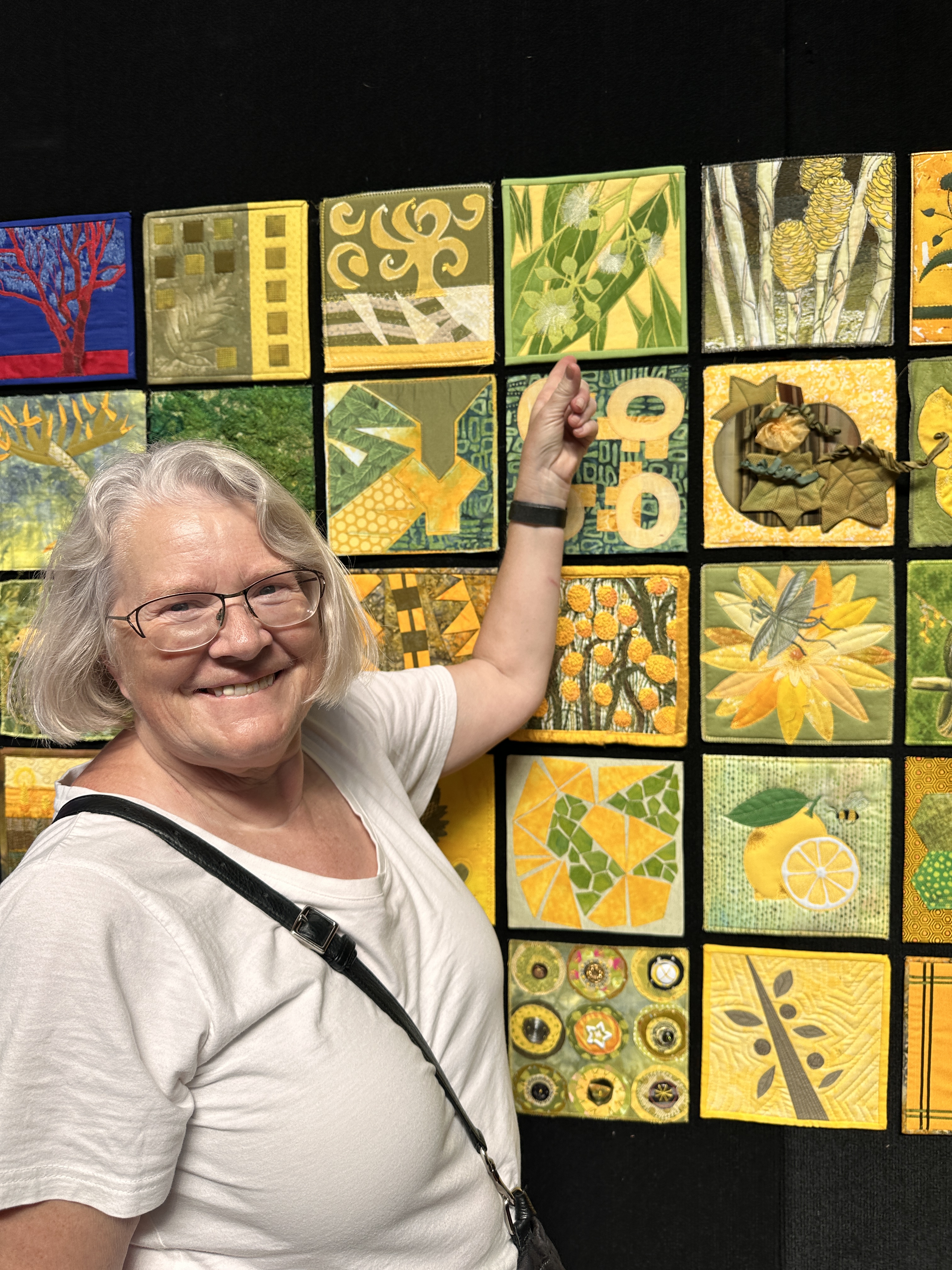 And perhaps the best part? Many of the makers themselves visited the exhibitions. We captured wonderful moments of them proudly pointing to their squares — living proof of the joy, pride, and sense of community this challenge has sparked. (See the images below to see the smiling faces beside their artworks!)