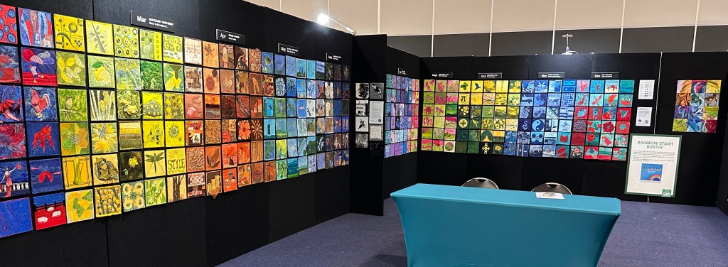 The first stop, in April 2025, where the quilts were displayed in a sweeping colour gradient. Many visitors paused in front of the walls, comparing transitions and noticing connections across different artists.
