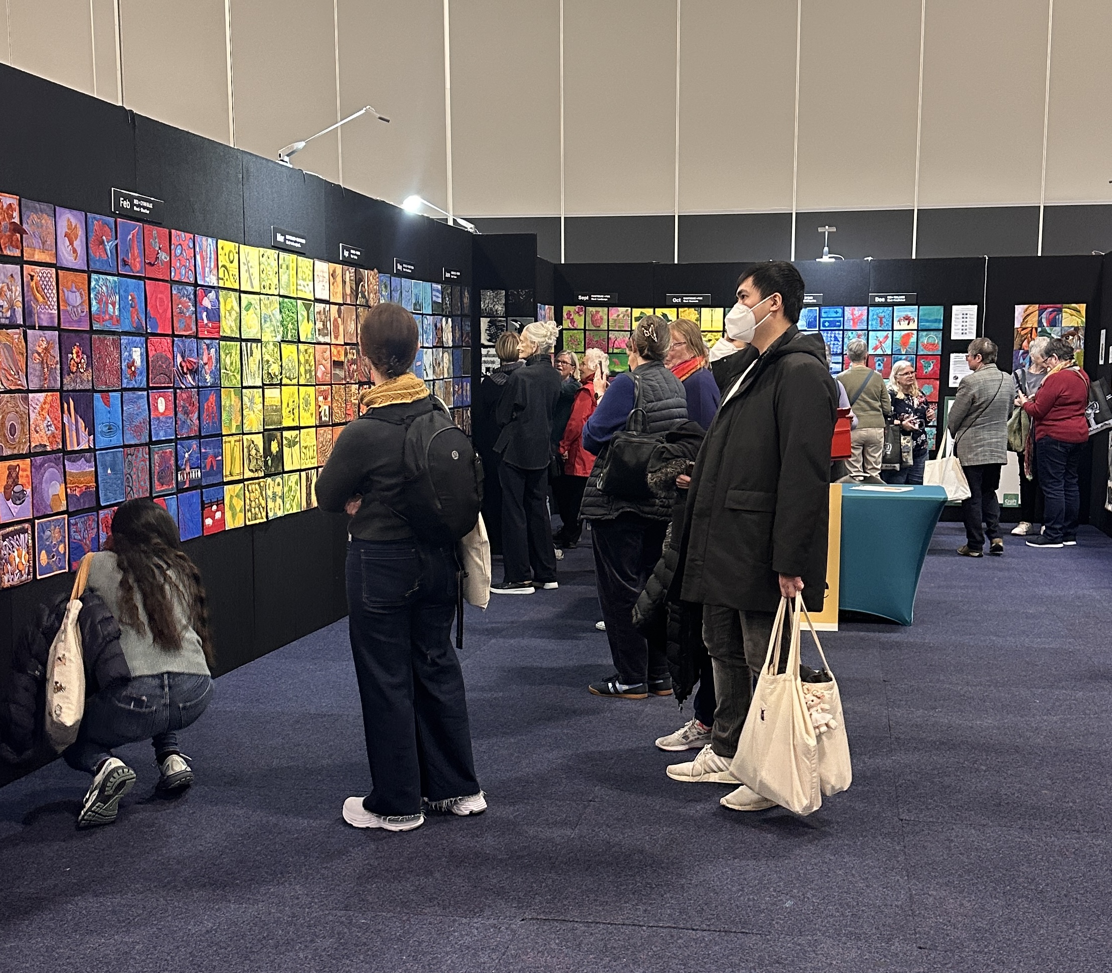 Displayed together, these small works form an expansive visual conversation — a colour-field mosaic of texture, emotion, and story. The collection has been exhibited at major quilt and textile events across Australia, including the Australasian Quilt Convention (AQC) in Melbourne, Sydney Craft & Quilt Fair, and Brisbane Craft & Quilt Fair, where it drew crowds of enthusiastic visitors.