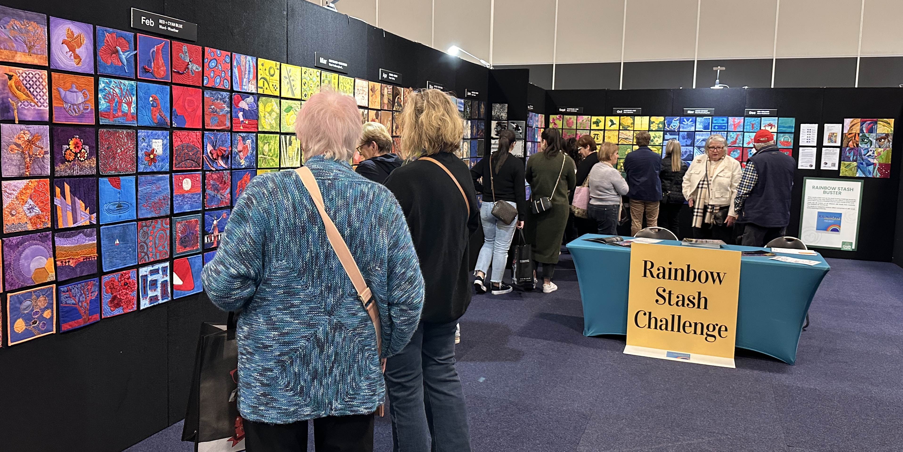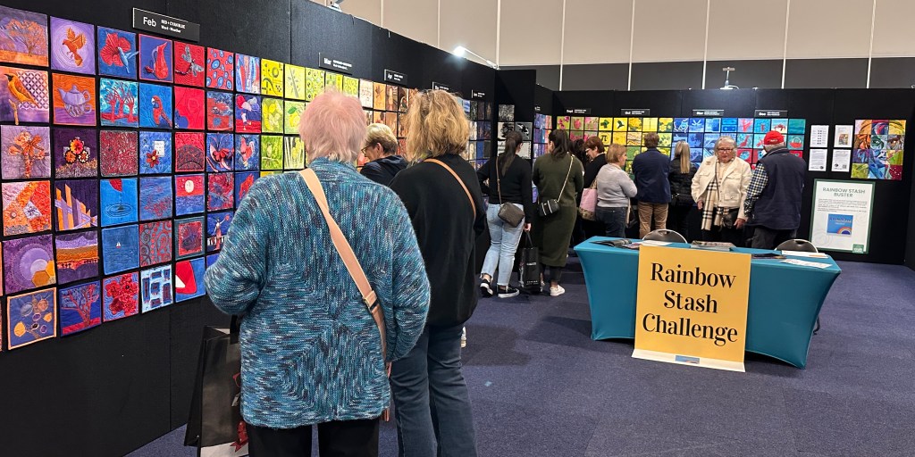 The Rainbow Stash Buster Project follows earlier initiatives — Workshop in a Box and Rainbow Stash Builder — designed by curator Brenda Wood of 2 Sew Textiles to encourage artistic exploration through accessible, community-based challenges.